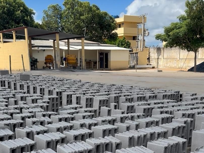 Fábrica em unidade prisional de Linhares produz mil blocos de concreto por dia